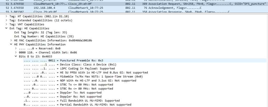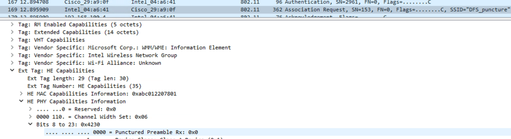 - DFS puncturing to work as expected needs support on both, DUT and Client Station.
