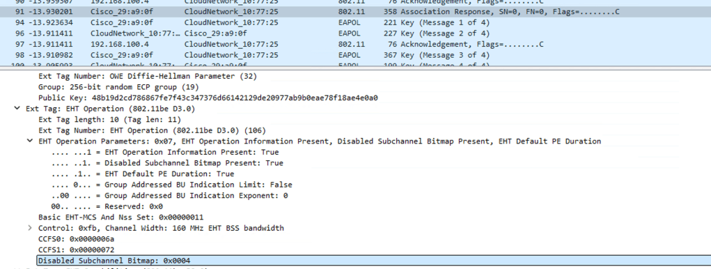 | Bit 0 | 0001 | Supports puncturing of secondary 20 MHz (in primary 80 MHz |