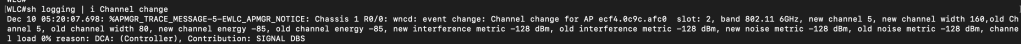 RRM takes into consideration multiple factors like active load on the AP radio, available channels for the DCA list that would allow channel bonding, interference resulting from channel bonding etc. before triggering the channel width change driven by DBS.