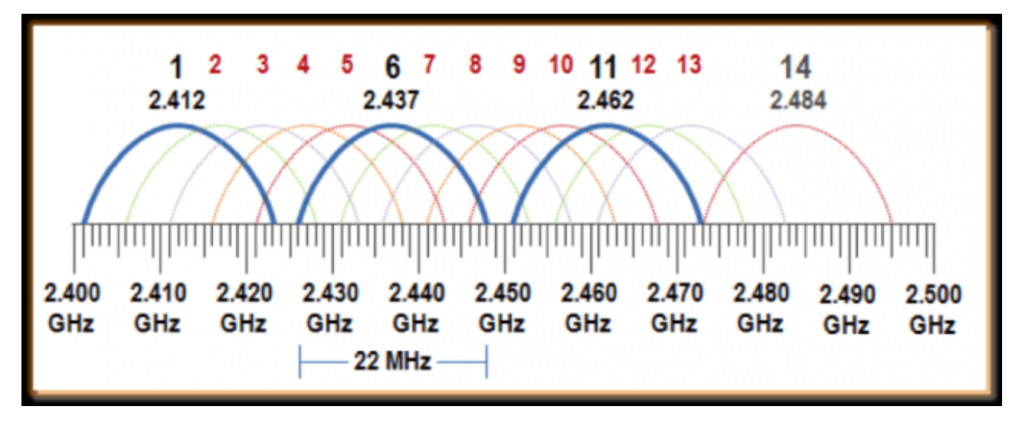 There are a total of 14 channels in 2.4 GHz ISM band which are 22 MHz wide each. There are only 3 non-overlapping channels which are 1, 6 and 11 respectively. It is not recommended to use any of the overlapping channels to avoid interference. Considering the high utilization and interference on 2.4 GHz, it is recommended to try force the clients to transmit on 5 GHz band if they have a 5 GHz radio using ‘Dual Band Operation with Steering’. This will provide legacy clients sufficient airtime on the 2.4 GHz band.